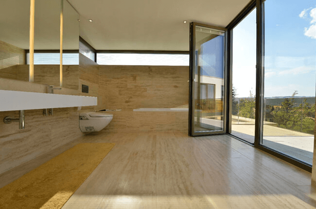 Steinfußboden im Badezimmer mit Terrasse